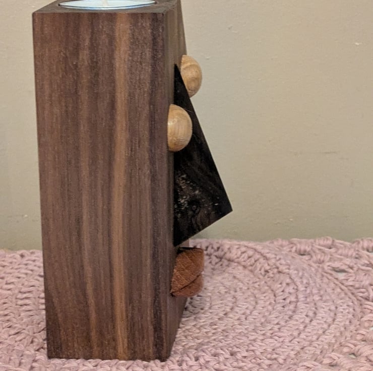 Made from English walnut, black American walnut, oak, mahogany, finished with wax.