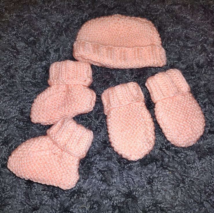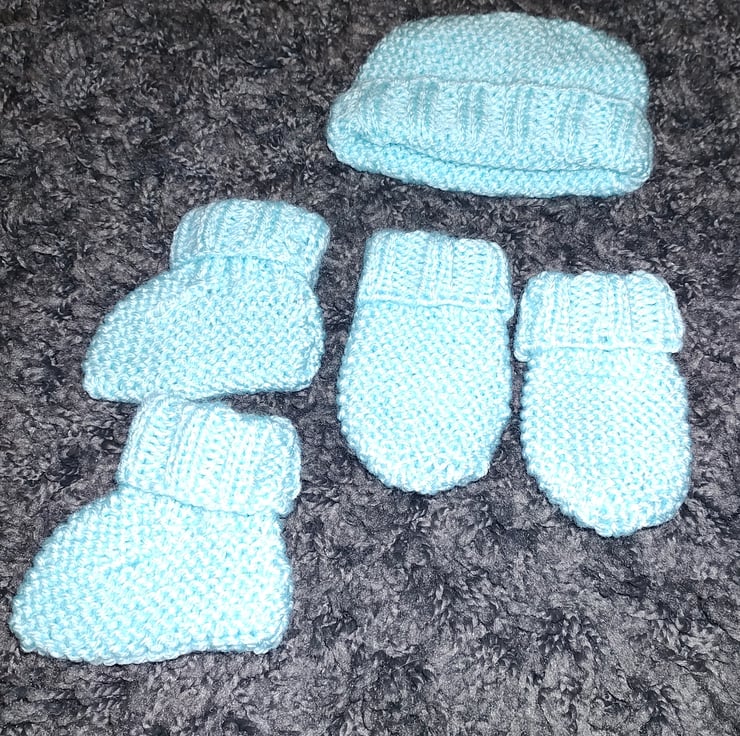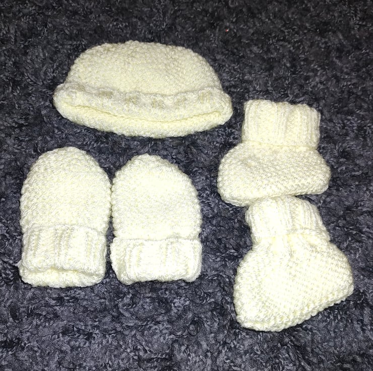Handmade New Born Baby Knitted Set - Hat, Mittens & Booties