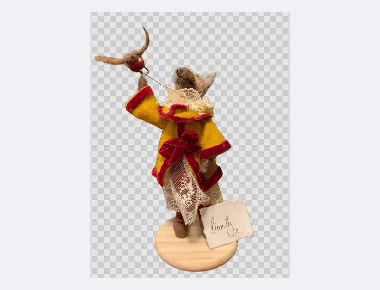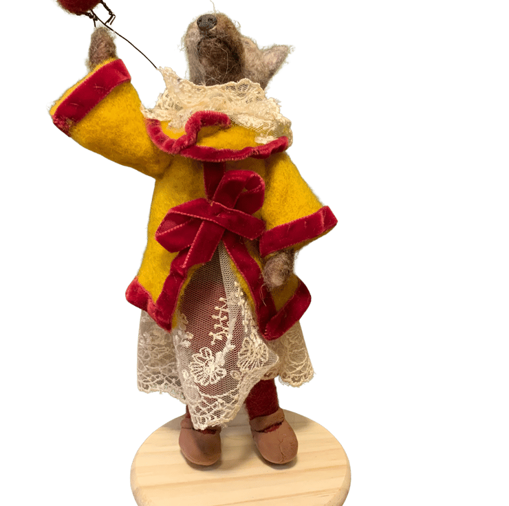 Decorative item – not a toy. Small parts & fibres: contains tiny components (e.g., eyes, trims) that may present a choking hazard. Keep away from babies, young children and pets. Fragile construction: wool fibres and embellishments can pull or shed if tugged. Handle gently and display out of reach. Allergy note: made from wool (may contain natural lanolin) and mixed trims/adhesives. Avoid if sensitive. Heat & flame: keep away from candles, stoves, open fires and other heat sources. Wool and lace are combustible. Moisture & sunlight: keep dry; avoid humid areas and prolonged direct sunlight, which can distort fibres and fade colours. Base & stability: supplied on a wooden base. Place on a level surface. For delicate furniture, add felt pads to protect from scuffs. Cleaning: light dust only (soft brush or air puffer). Do not wash or submerge in water. Packaging: may include pins or ties—open with care and dispose of safely. This is a decorative art piece and is not certified as a toy under UK/EU toy safety
