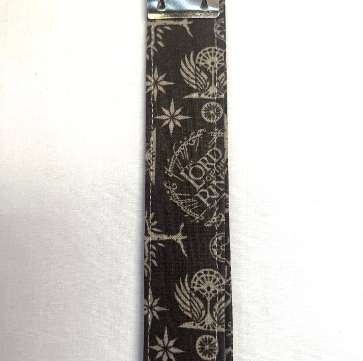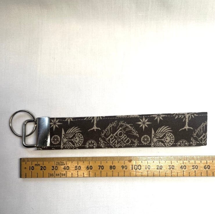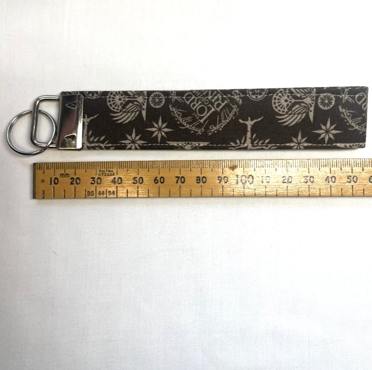 A Mumma Made fabric Keyring that loops comfortably around your wrist. Has a secure metal clasp. Pretty and practical.
