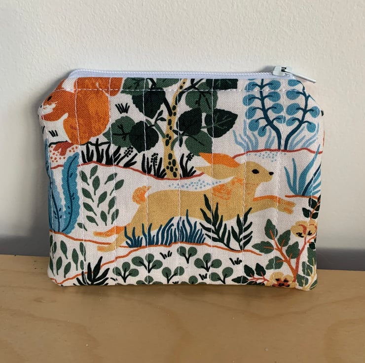 The purse is made in this lovely rabbit print fabric on a winter white background.