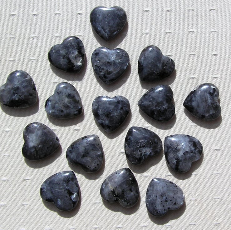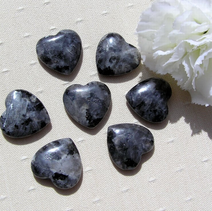 6 (Six) Beautiful Black Labradorite Solid Gemstone Crystal Hearts