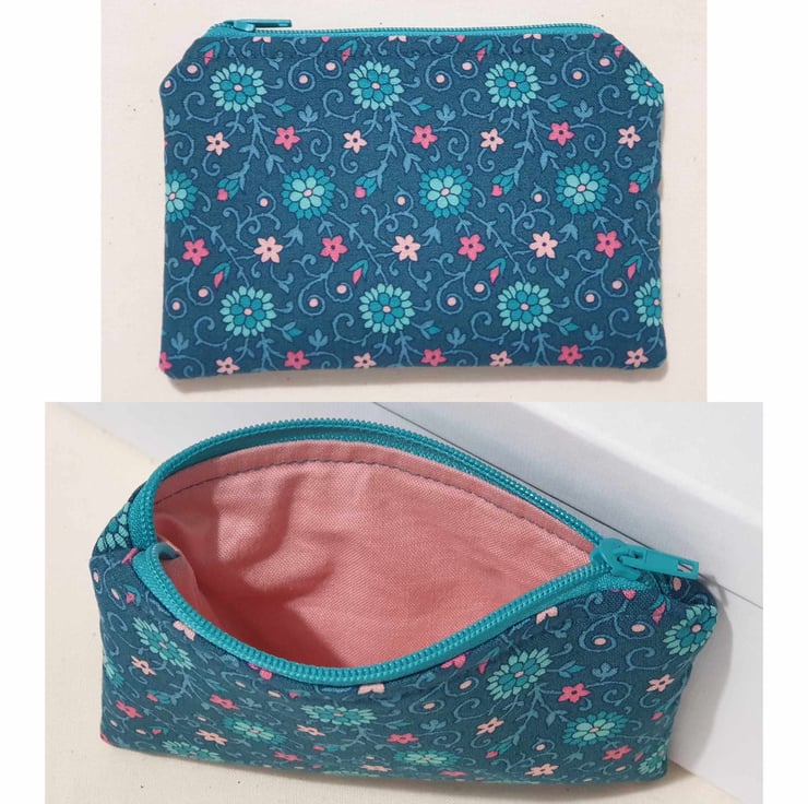 Liberty of London Fabric Coin Purse. This charming coin purse is a delightful blend of style and practicality, handcrafted with love and attention to detail. Made with beautiful 100% cotton outer fabric, a premium cotton lining, lightly padded with fusible fleece and a zip closure, it's a perfect little pouch for carrying your everyday essentials.