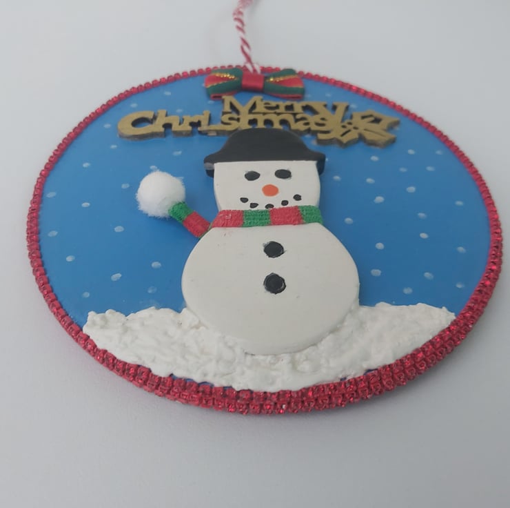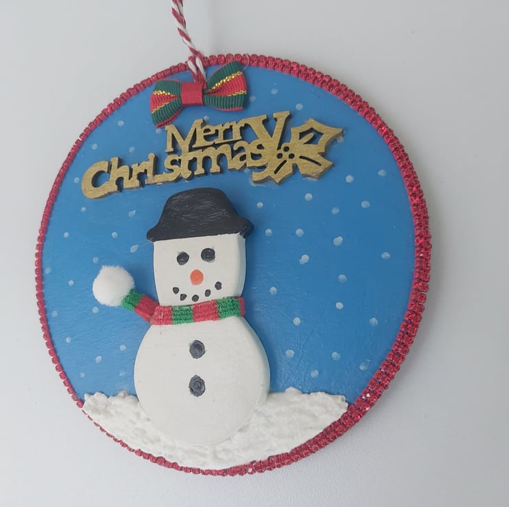Handmade out of air dry clay, wooden Merry Christmas, Diamante edging,