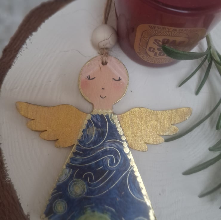 These beautiful little folk art angels have been inspired by Vincent Van Gogh's Starry Night painting.