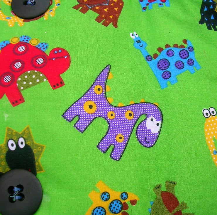Novelty DINOSAURS in a cotton outer fabric with colourful dinosaurs on green background. (Pattern placement may vary from image)