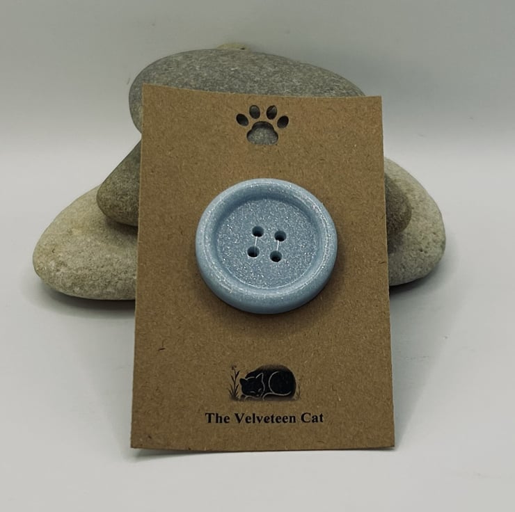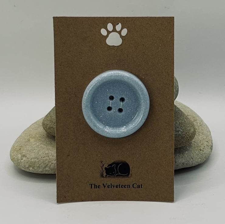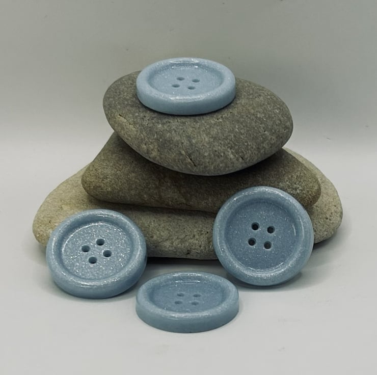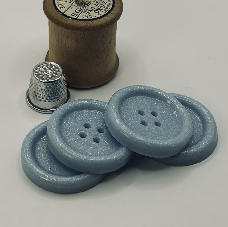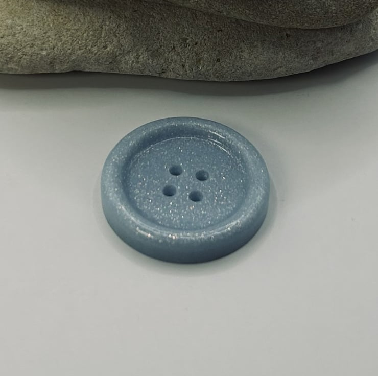 Add a touch of winter magic to your makes with these handmade 35mm resin buttons in a dreamy ice blue hue, delicately dusted with iridescent fine glitter. Each four-hole button shimmers like sunlight dancing on distant snow, casting a subtle blue glow that evokes frosty mornings and crisp alpine air. Perfect for coats, hats, knitwear and craft projects, these buttons are both functional and enchanting - ideal for adding a glistening finish to your handmade creations.