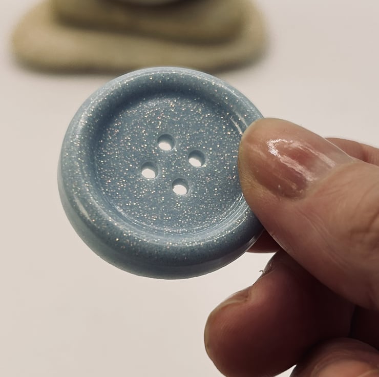 I needed an extra-large button for a project but couldn’t find the right one anywhere — so I got a mould and started making my own in varying sizes.