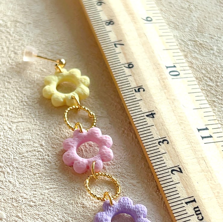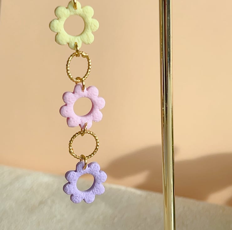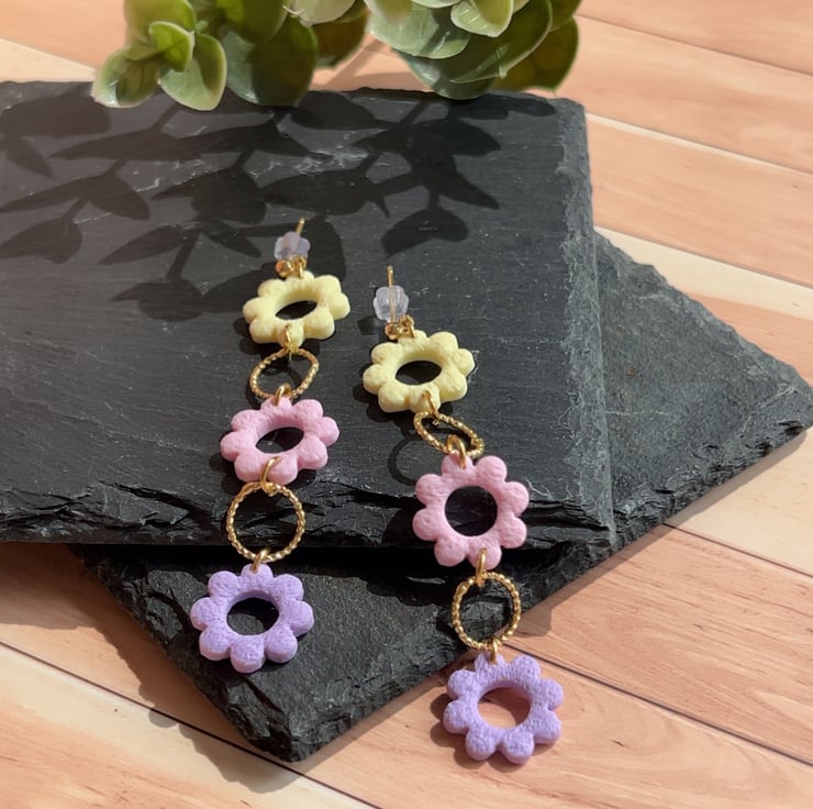Pastel floral dangle earrings for her , Lightweight clay jewellery for gift
