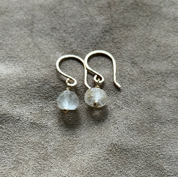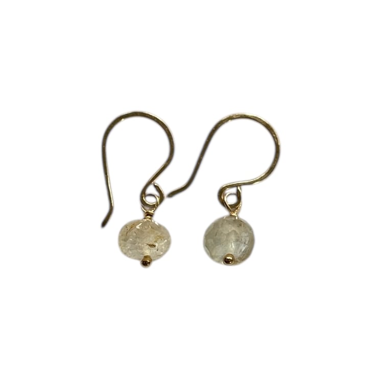 Elegant handmade earrings featuring natural faceted topaz gemstones and 14k gold-filled hooks. The gemstones shimmer with subtle golden tones that catch the light beautifully.