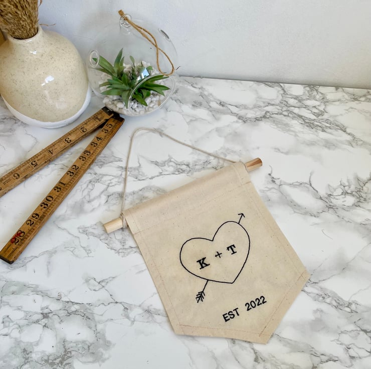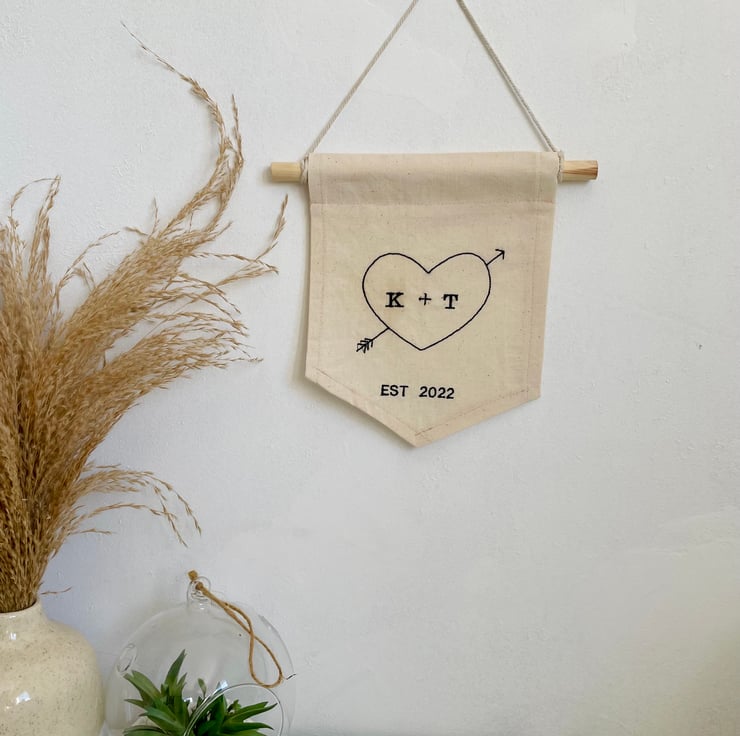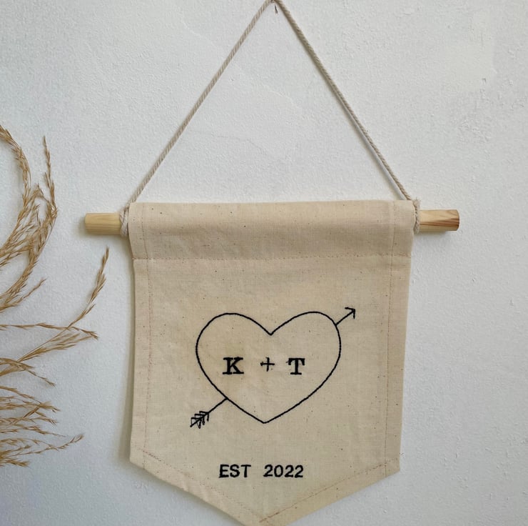 Add a personal touch to your anniversary or wedding gift with this Unique wall hanging. Each item is lovingly handmade and embroidered to order.