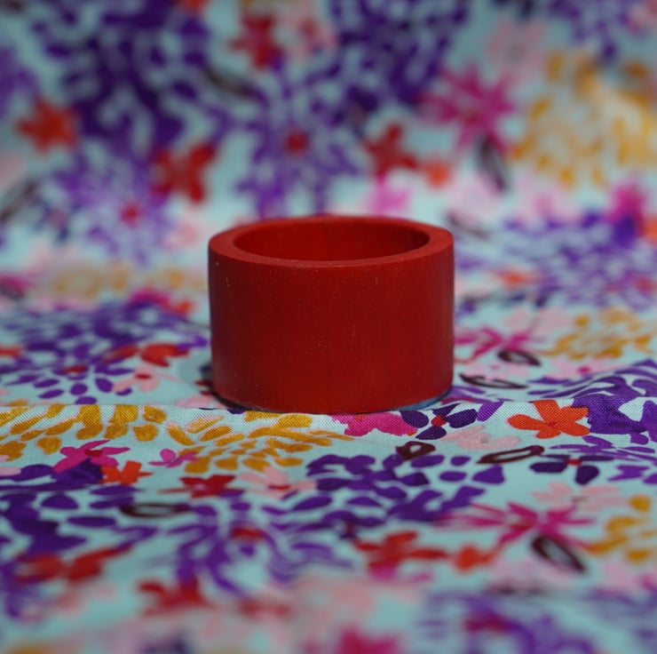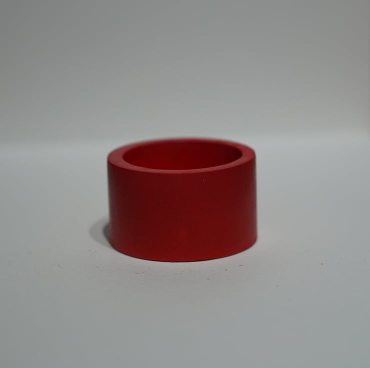 Turned hardwood t light holder size 5cm diameter 3cm tall finished with a red finish, complete with a felt base to reduce scratching on your surfaces.