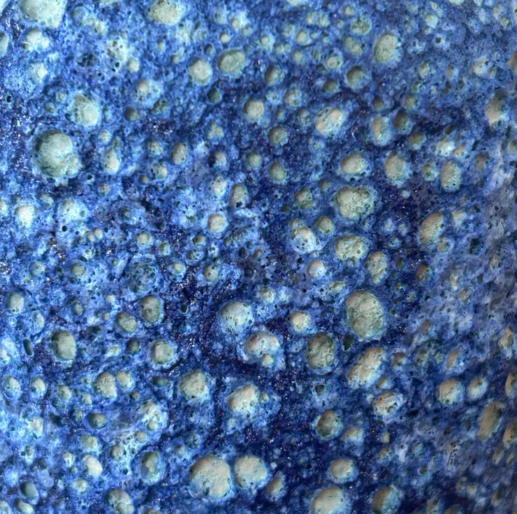 Hand thrown vase finished in my blue lava glaze. The surface of this pot is so tactile and the variation of the lava over is it mesmerising.