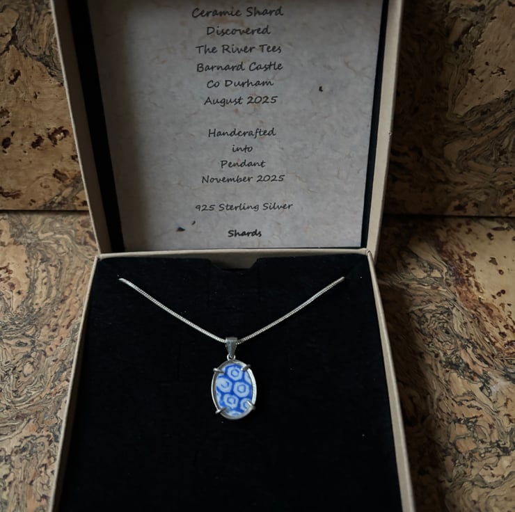 The idea is to create something new from old, use recycled materials to produce unique jewellery. The finished piece isn’t meant to be perfect but instead retain part of the original character, including marks/scratches, all part of the history of the ceramic and materials used.