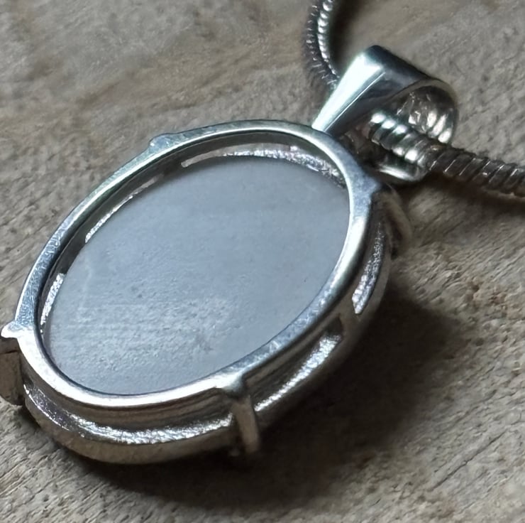Set in a 15mm x 10mm oval claw bezel made from 925 Recycled Sterling Silver.