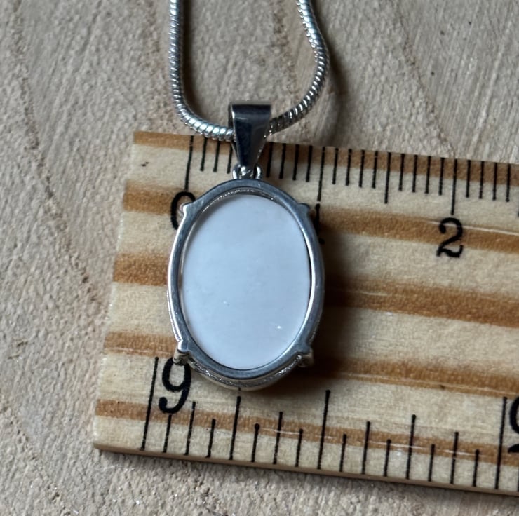 Hanging on 18 inch 925 Recycled Sterling Silver chain.
