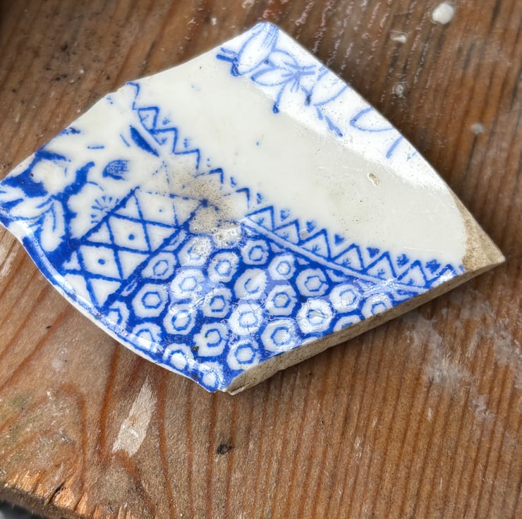 On a lovely summer day I found a piece of blue and white ceramic, with a hexagon pattern.