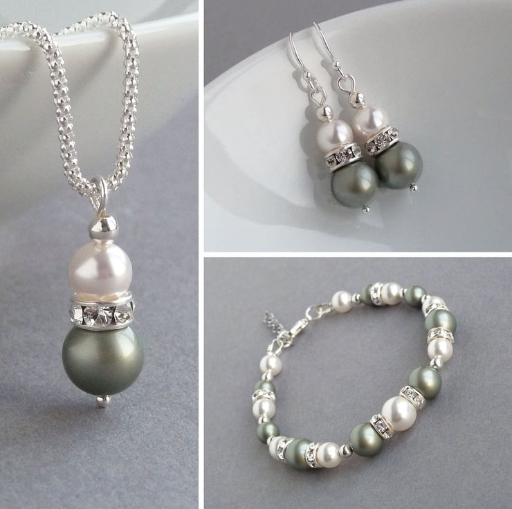 Dusty green pearl and crystal jewellery set: https://folksy.com/items/8580547