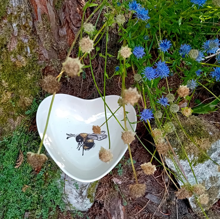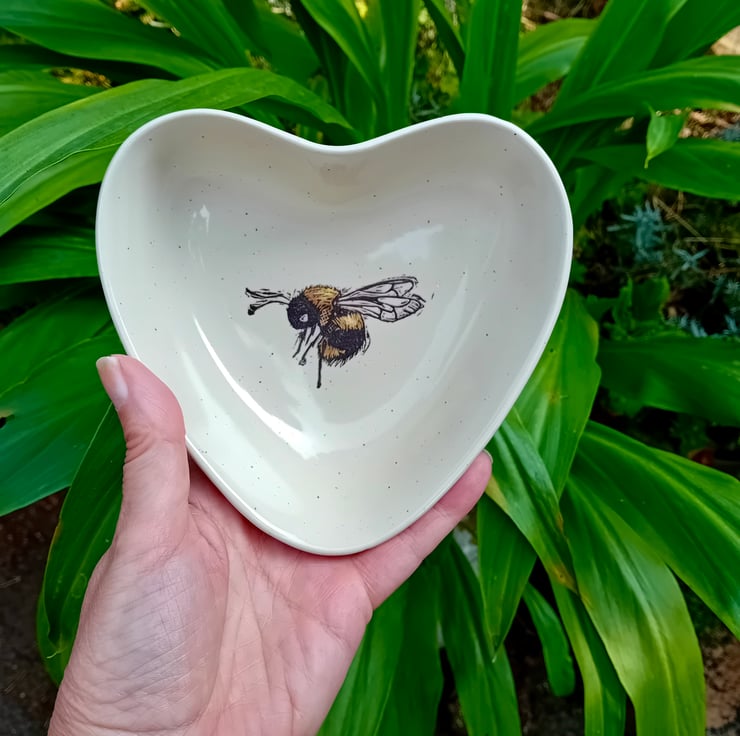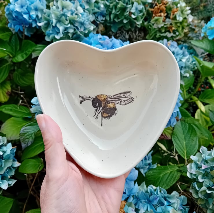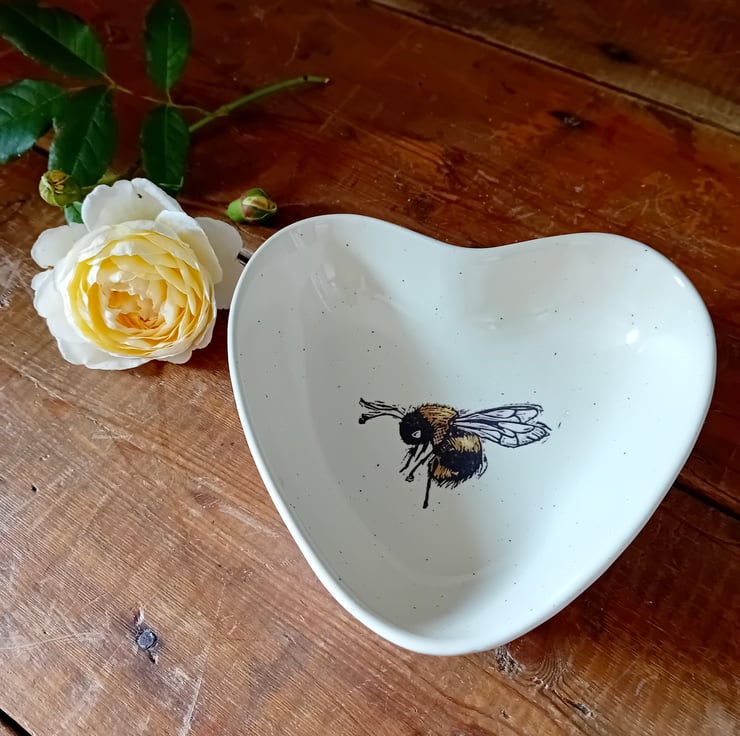 Heart shaped ceramic bee bowl - bee lover gift, rustic home, gardener gift,