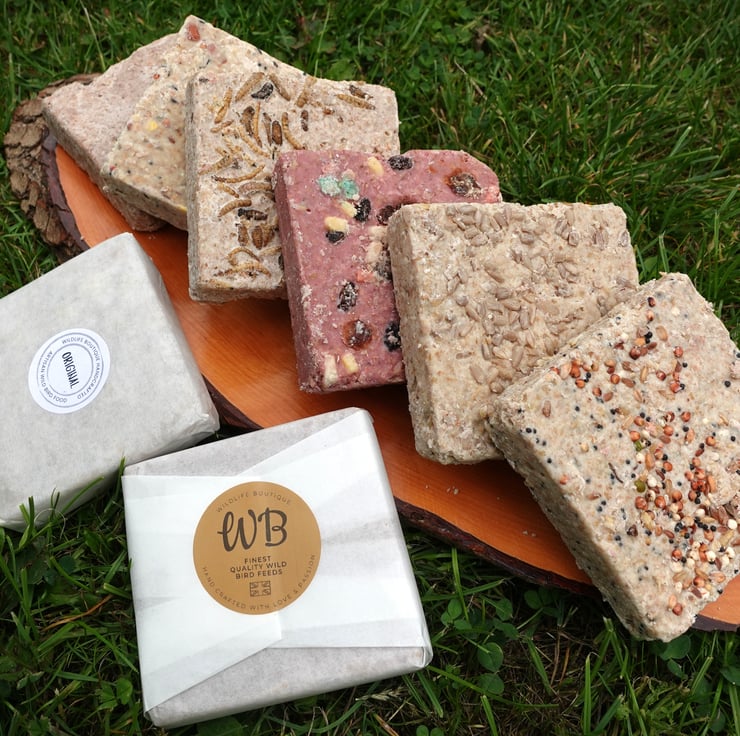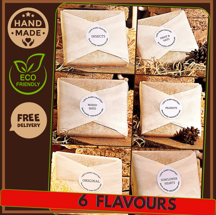 Treat your garden visitors to a selection of individually handmade, plastic free wrapped, high quality suet blocks. Made in small batches using pure catering grade fat and quality natural ingredients no cheap fillers, just proper nutritious bird food your wild birds will love.