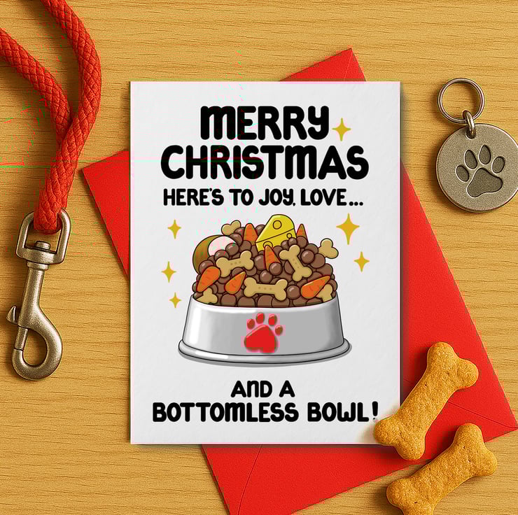 Merry Christmas Bottomless Bowl Dog Card – Festive Treats Design