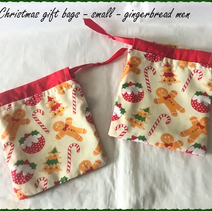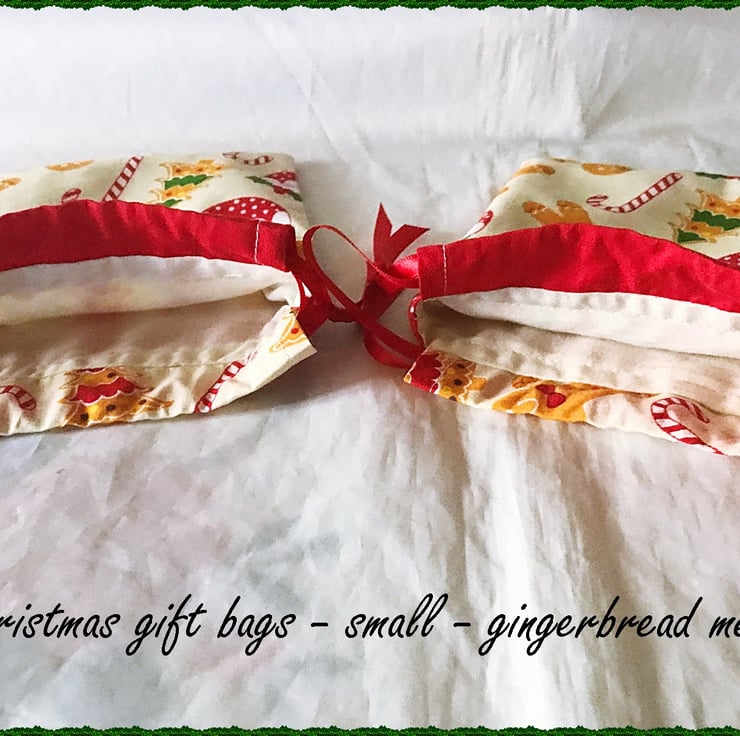 Gingerbread Men Christmas Drawstring Gift Bag, Eco Friendly Reusable Fabric Bag