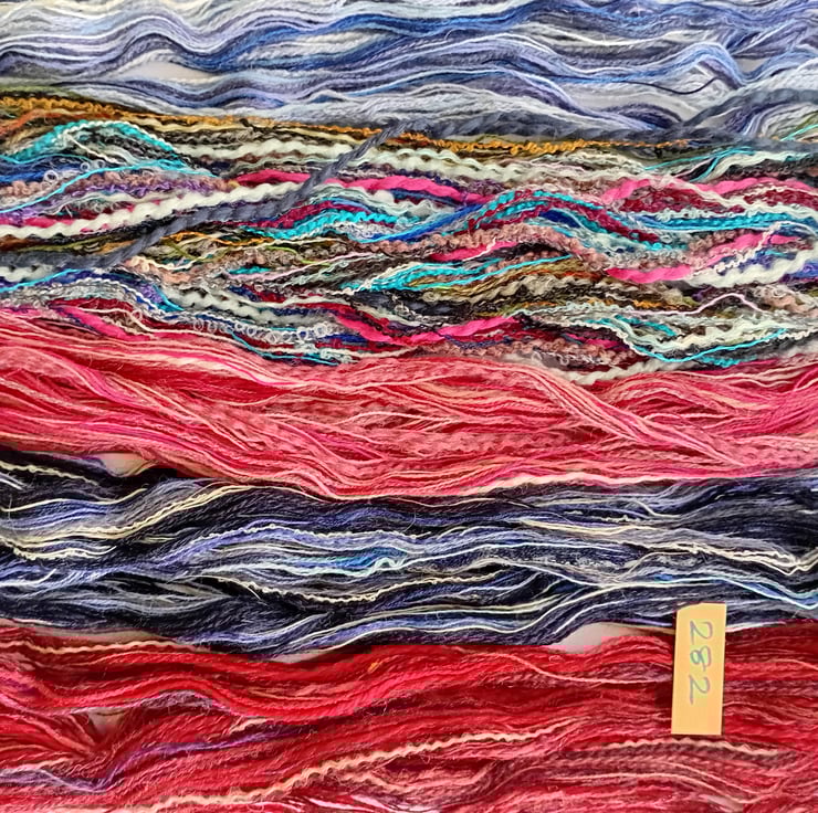 Folly Flora Pack 282 - an inspiration or 'stash' pack of creative threads, yarns and fibres, 'bundles or skeins' in a variety of colours, textures, weights and thicknesses.