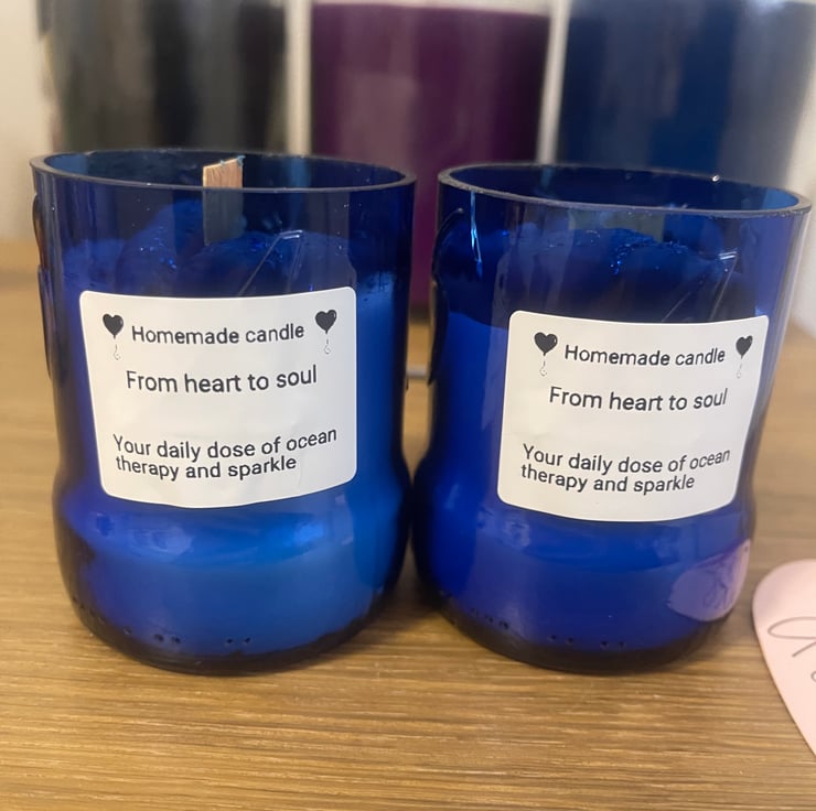 2 pcs of homemade candle , beeswax , ocean and sparkly scented