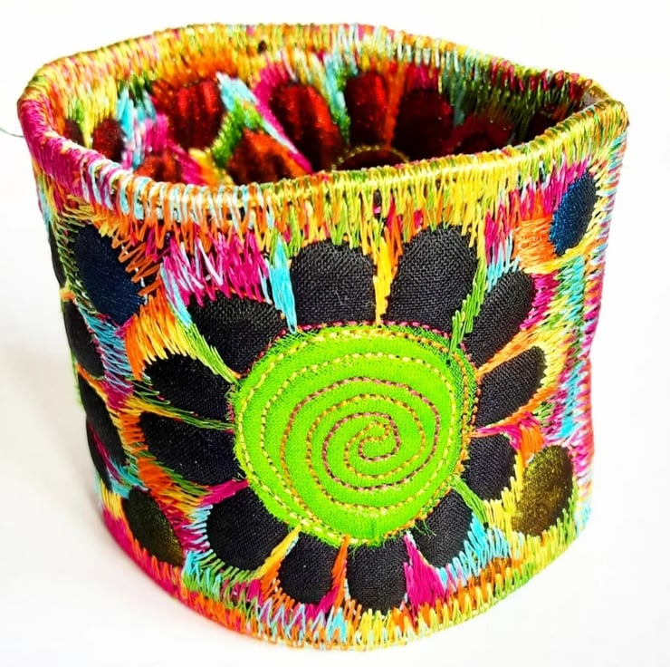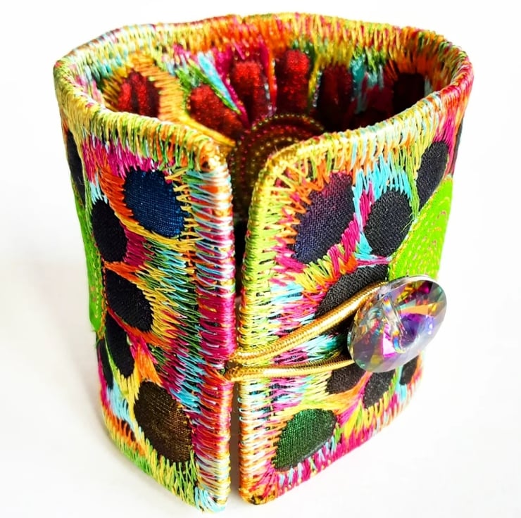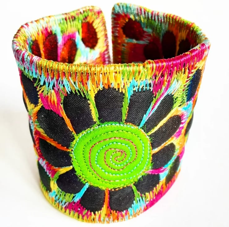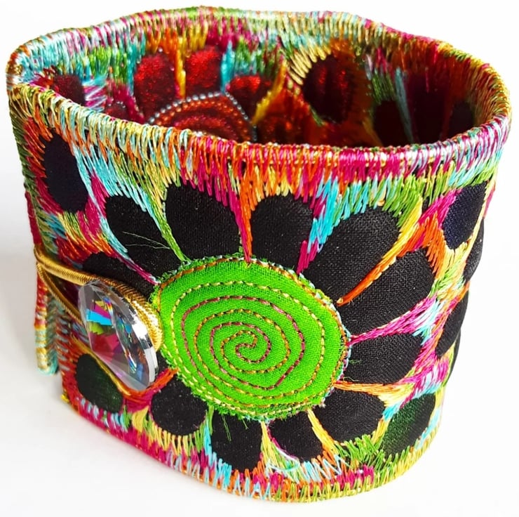 This is a handmade machine stitched fabric Stiched Silk Cuff or bracelet.
