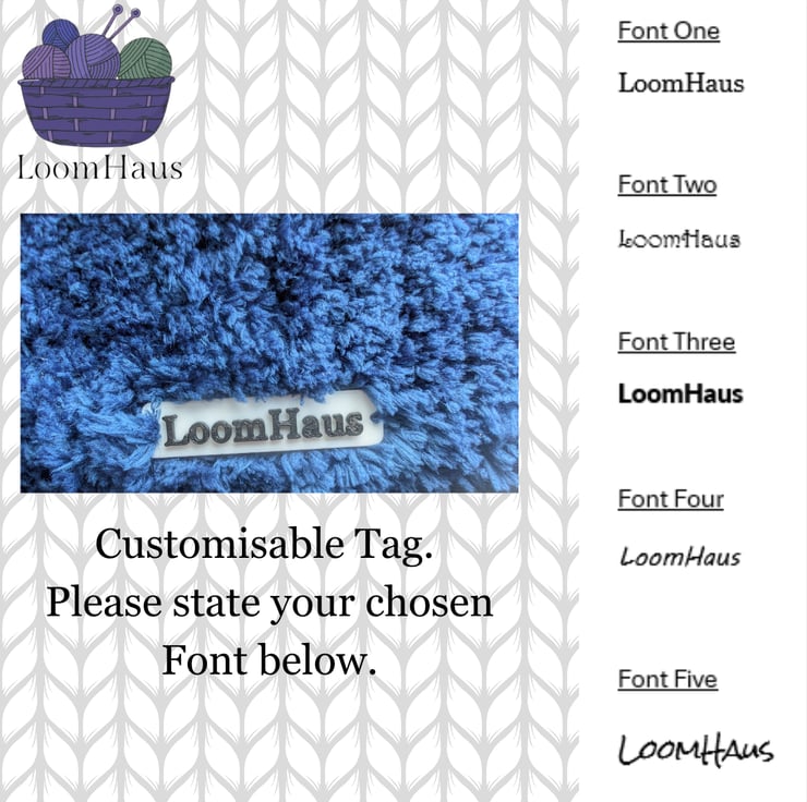 You can also customise your snood with a personalised name tag in your chosen font (as shown in the pictures). If not, a LoomHaus tag will be added by default.