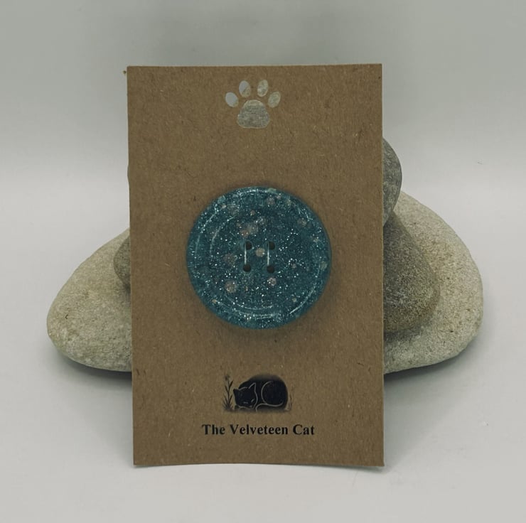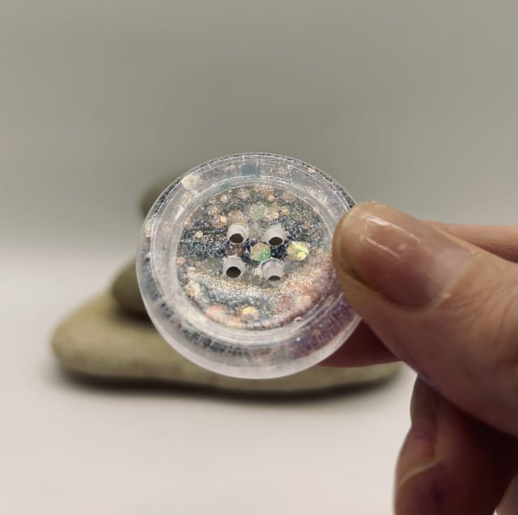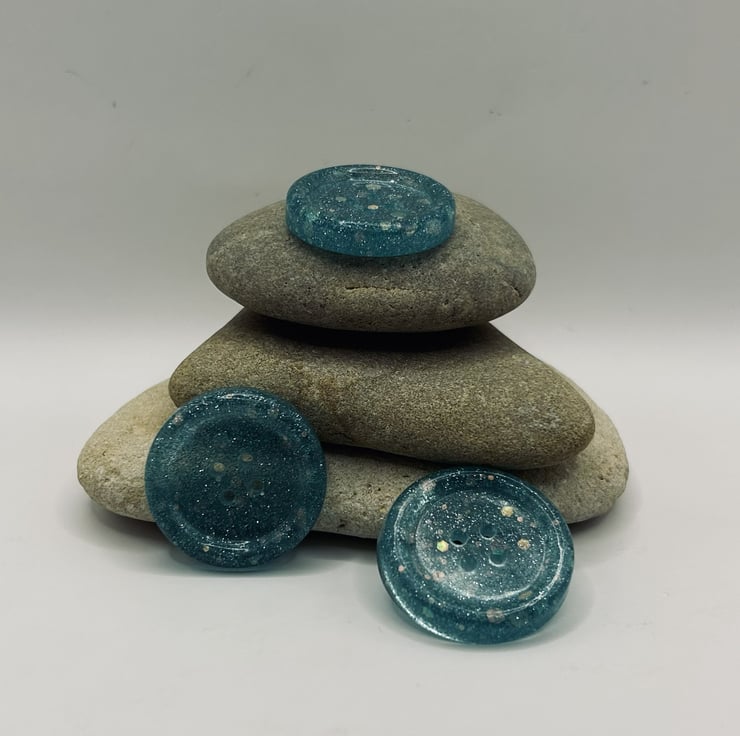 Add shimmer and charm to your creations with these 35mm handmade resin buttons, each featuring a classic four-hole design. Choose from light blue with chunky and fine glitter for a frosty sparkle or clear with a soft pink tinge, flecked with chunky and fine glitter for a subtle glow. Perfect for garments, coats, hats, knitting, crochet and all kinds of crafting, these buttons are lightweight, durable and full of festive flair.