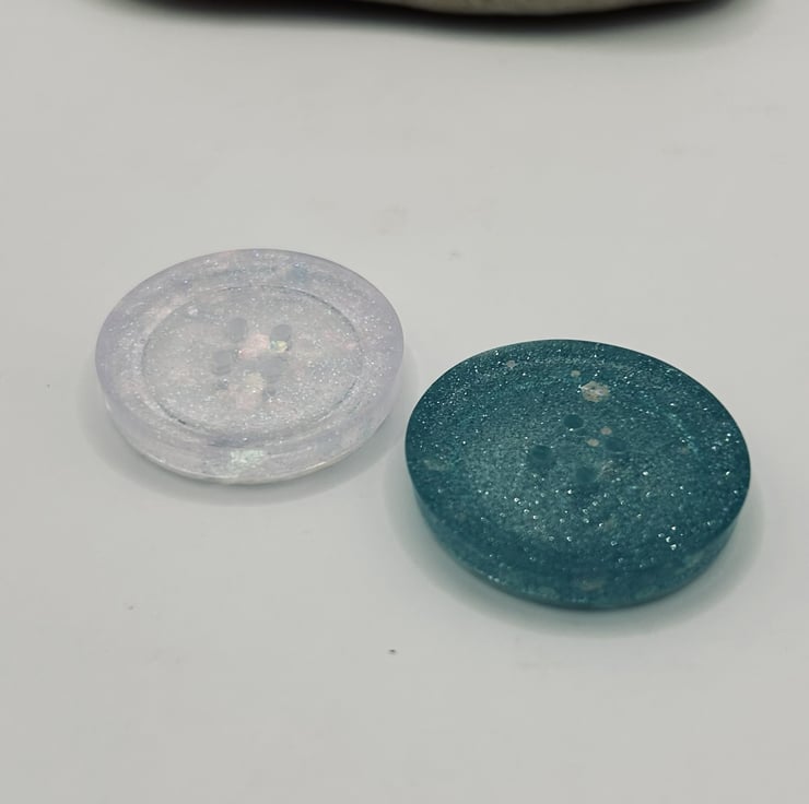 I needed an extra-large button for a project but couldn’t find the right one anywhere — so I got a mould and started making my own in varying sizes.
