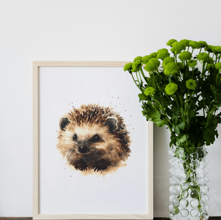 Unframed Hedgehog print in a variety of sizes. Perfect for a countryside themed home!