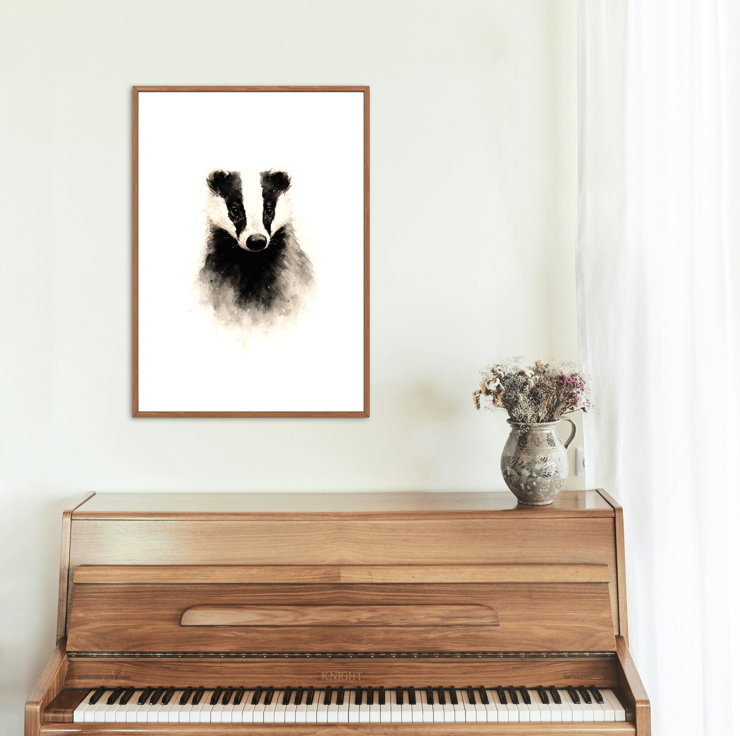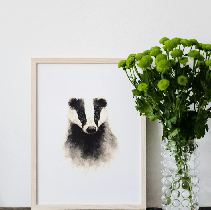 Unframed Badger print in a variety of sizes. Perfect for a countryside themed home!