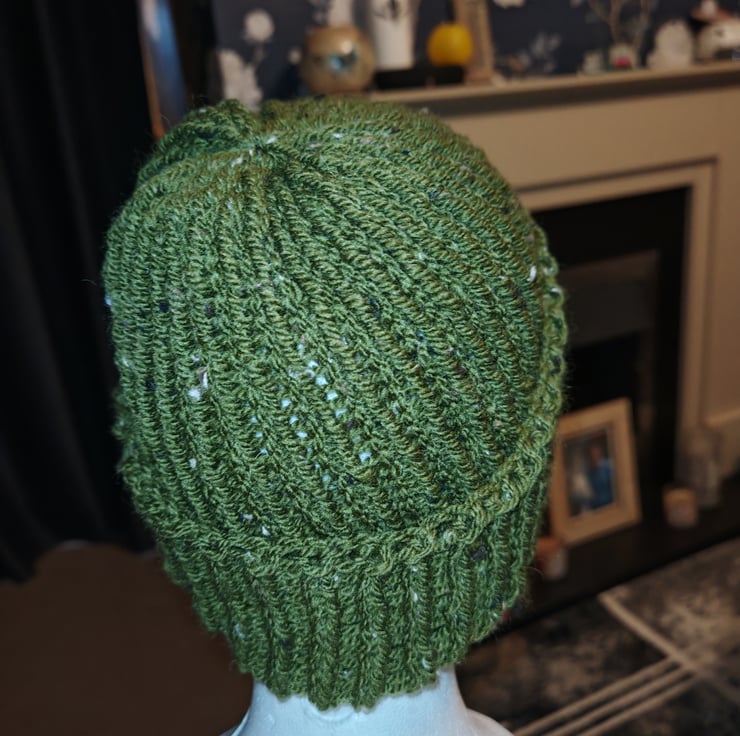 Knit ribbed beanie is both warm and stylish, made with a beautiful shade of green Aran tweed, a must have to keep the cold at bay this winter