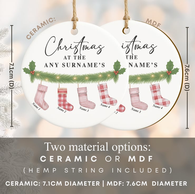 Choose from ceramic or MDF, both beautifully printed for a timeless festive look. Whether it’s a gift, a family tradition, or a special keepsake, this bauble adds a warm holiday touch to any home.