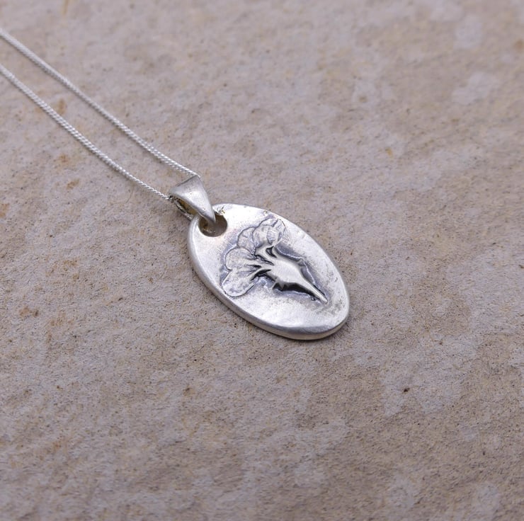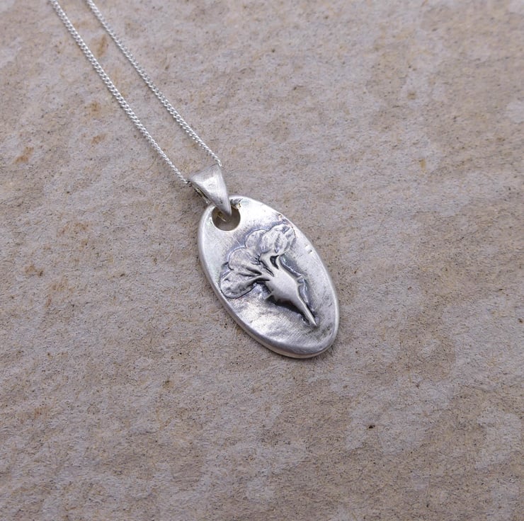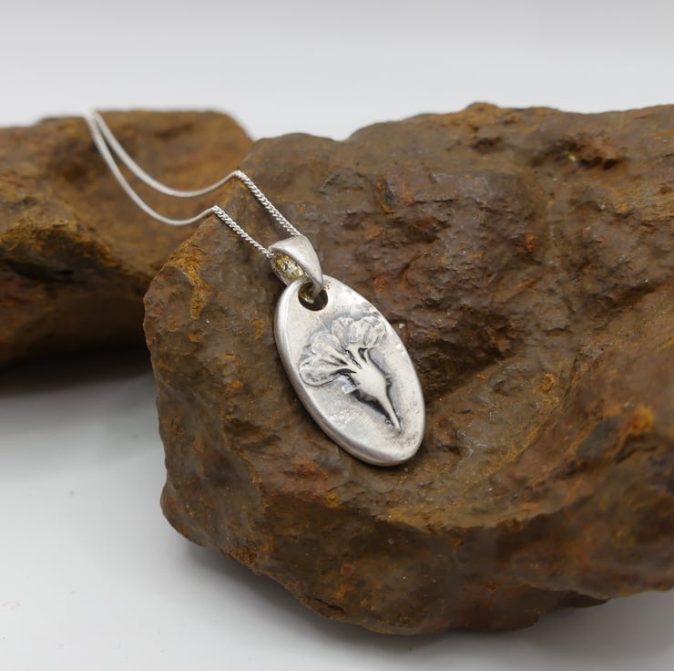 Recycled Sterling Silver Real Herb Robert Flower Mould Pendant Necklace.