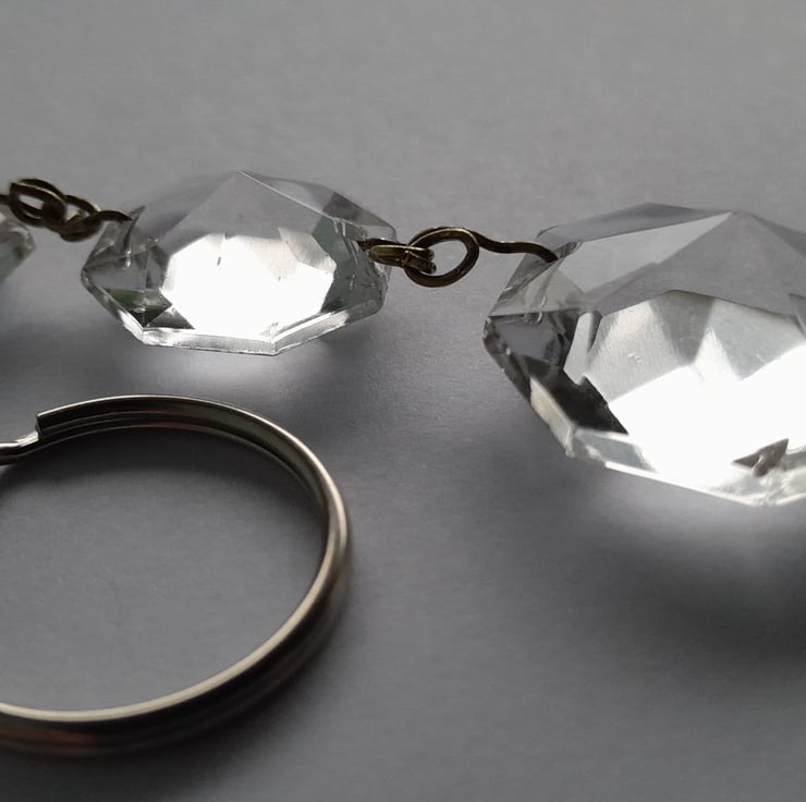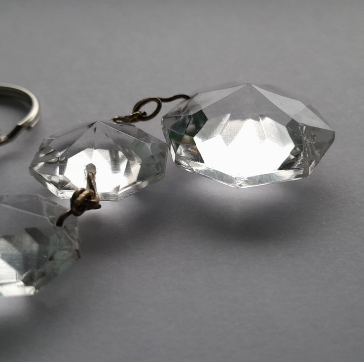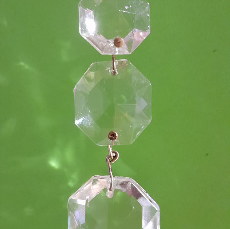 These are three different size octagonal crystals connected with original antique wire and a keyring. These are from a vintage antique chandelier so may have some imperfections.