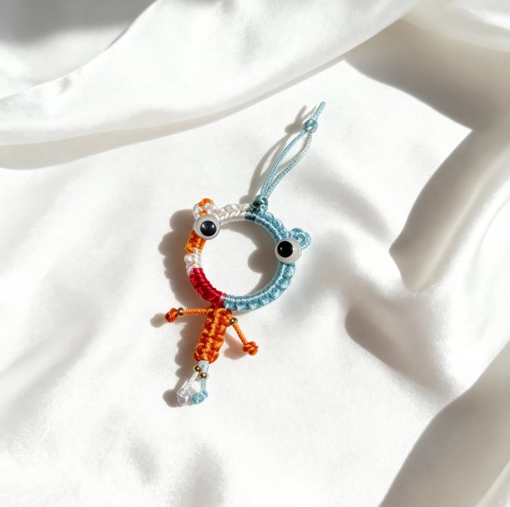 These two creatures began as a joyful tangle of thread and imagination—one red, one multicolored, each knotted by hand with a touch of whimsy and a wink of mischief. My sister thought she was making frogs. I saw geckoes. In the end, we agreed: they’re whatever you want them to be.