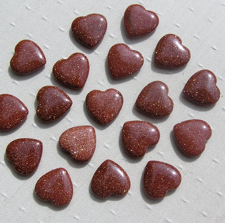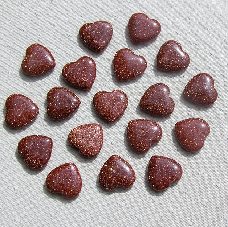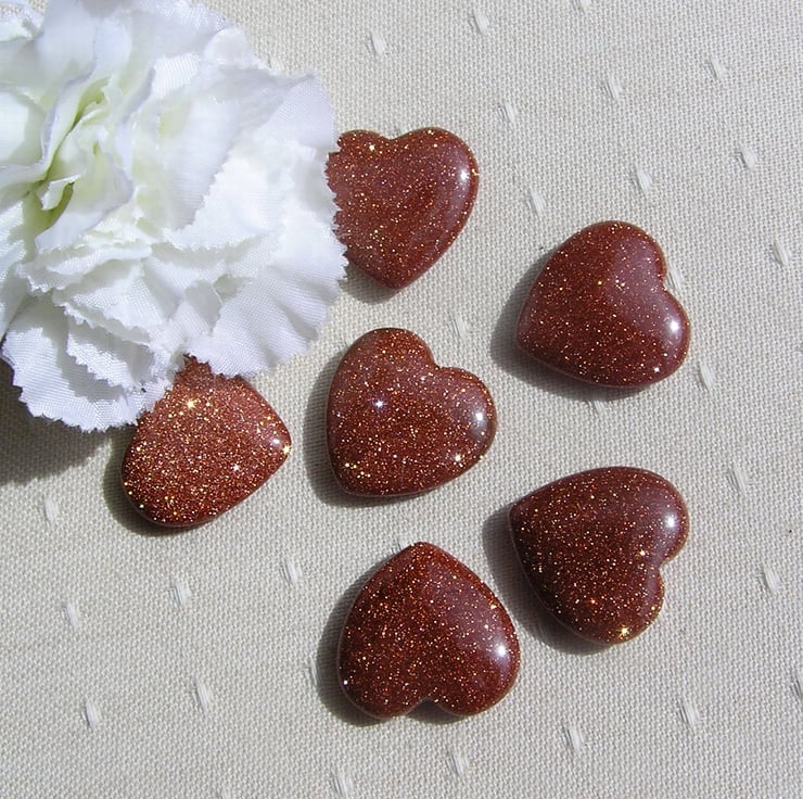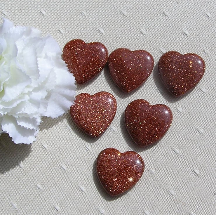 6 (Six) Beautiful Brown Goldstone (Sandstone) Solid Gemstone Crystal Hearts