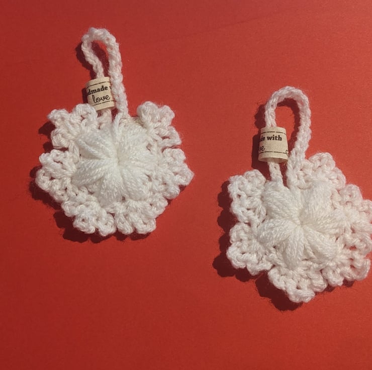 Each snowflake is approximately 8cm across and handmade. Each order contains two snowflakes.