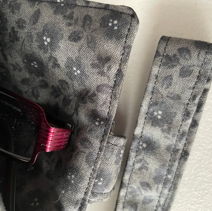 Handmade quilted glasses case or mobile phone case with lanyard that can be worn round the neck or removed to out in a bag.