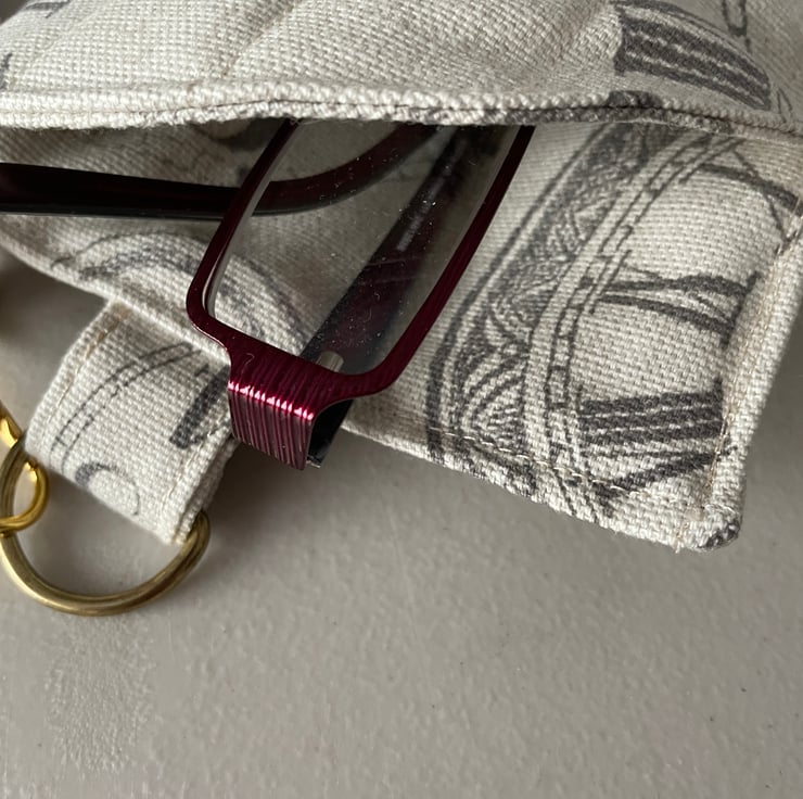 Handmade quilted glasses case or mobile phone case with lanyard that can be worn round the neck or removed to out in a bag.