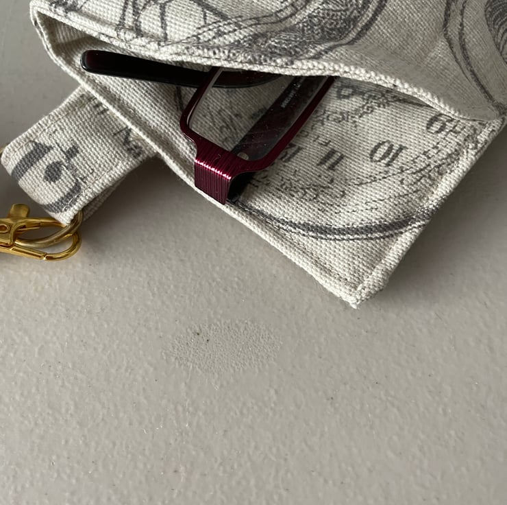 Handmade quilted glasses case or mobile phone case with lanyard that can be worn round the neck or removed to out in a bag.