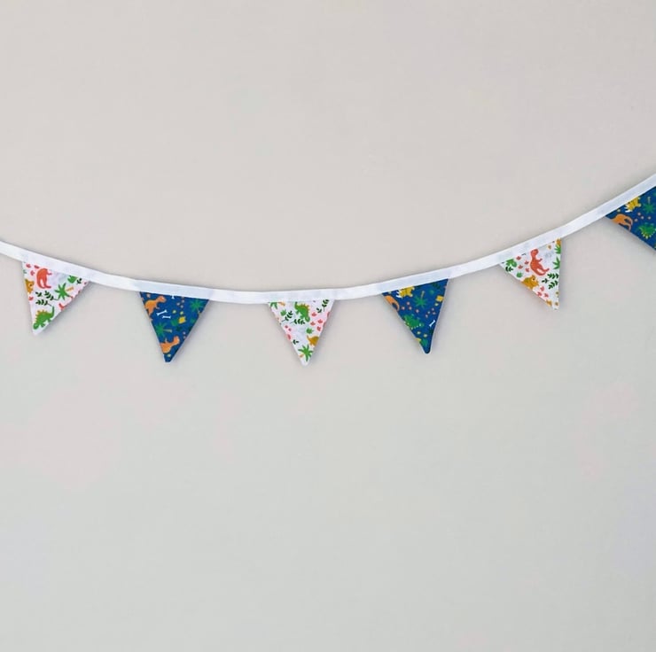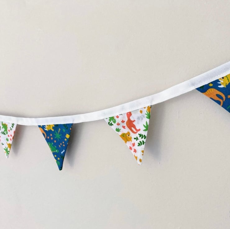 Dinosaur Mini Bunting: Blue, White Double Sided Fabric