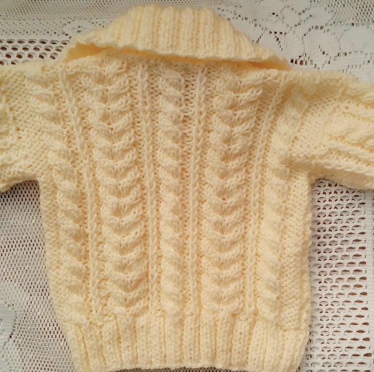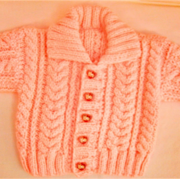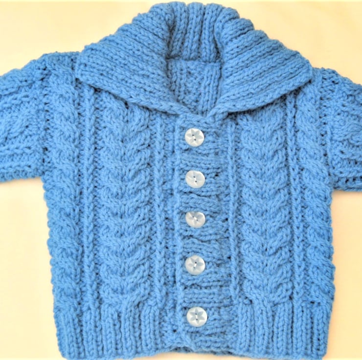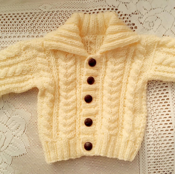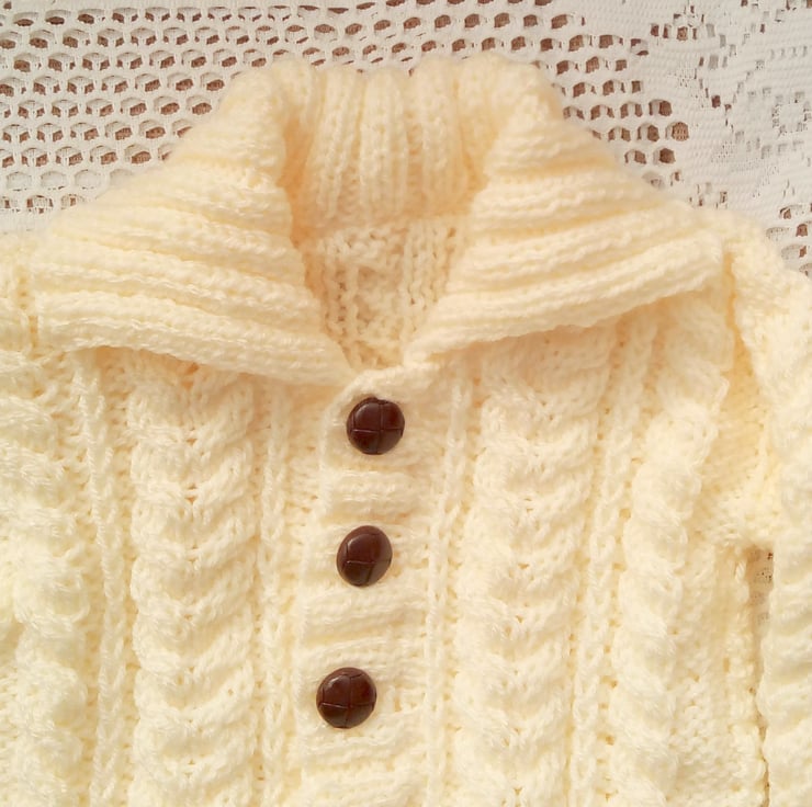 Unisex Knitted Cabled Cardigan with a Collar, Baby Shower Gift, New Baby Gift, Baby Cardigan, Aran Baby Cardigan