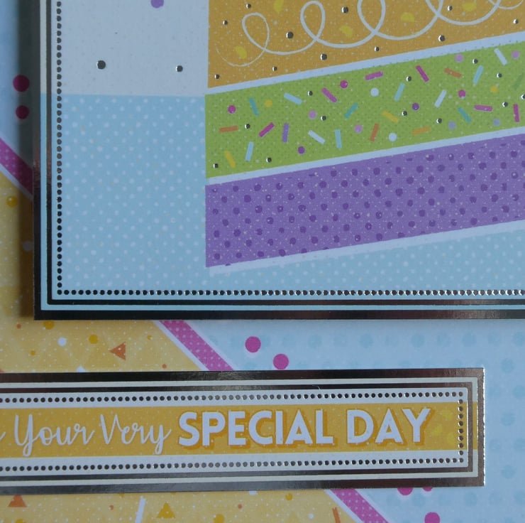 Along the bottom edge of the inside of the card is a strip of matching dotty patterned card with another message, this time with the words Let's Celebrate.