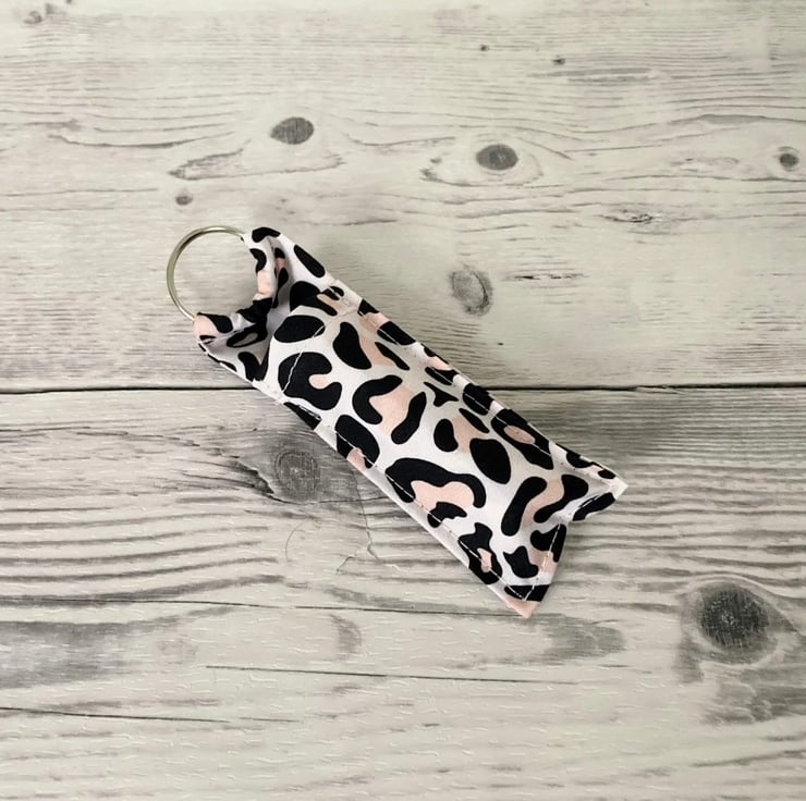 Pink Leopard Print Cotton Fabric Lip Balm Holder Keychain: Lipstick Storage