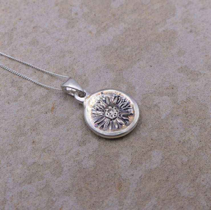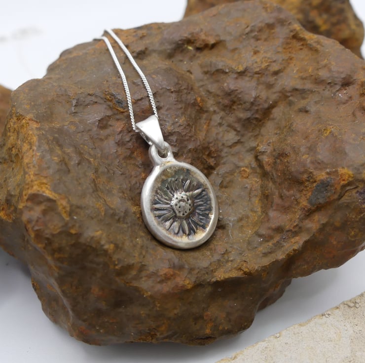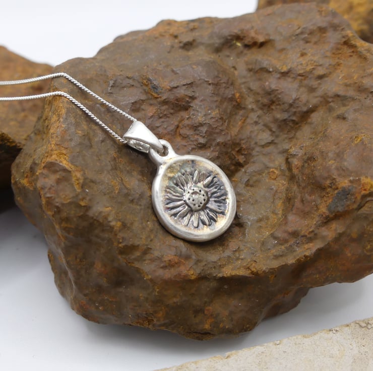 Recycled Sterling Silver Real Daisy Flower Mould Pendant Necklace ECO STS Chain.