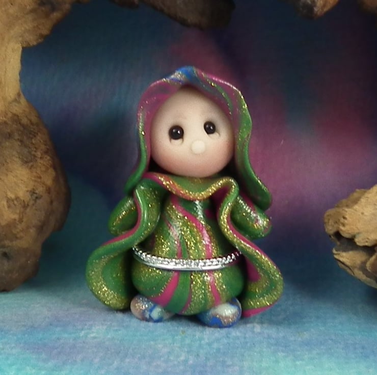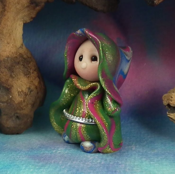 This is a 'one of a kind' creation having been entirely handmade without the use of moulds here at my studio on the Sussex Coast. Modelled with artist blend polymers, blushed before sealing with lacquer, Marlie has sparkling black onyx eyes and glittering robes. Marlie the Magical Gnome is just one and a half inches tall.